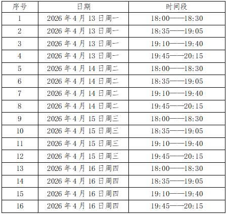 预约时间:2026年4月9日8:00——4日13日9:00